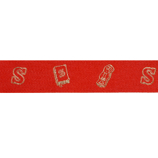 prestige lint 15mm/100m "Sinterklaas" figuurtjes col. 324 rood + goud