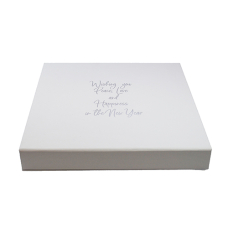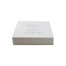 Luxbox WIT met bedrukking in zilver 205x205/30mm (6 rijen)