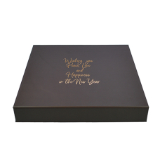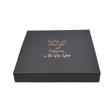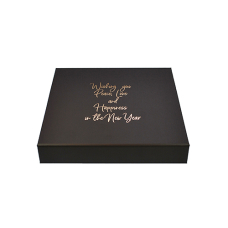 Luxbox ZWART met bedrukking in goud 205x205/30mm (6 rijen)