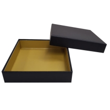 Royal box ZWART 9 pralines (108x108/25mm) met inlegger Blinkend goud