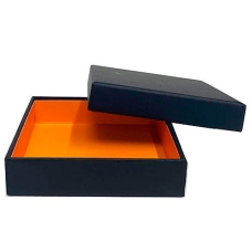 Royal box ZWART 9 pralines (108x108/25mm) met inlegger Sunset orange opaque