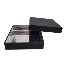 Royal box ZWART 9 pralines (108x108/25mm) met inlegger Blinkend zilver
