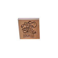luxevensterdoos N°1 90x90/29mm Kraft met sleeve 'All you need is chocolate' Lichtbruin