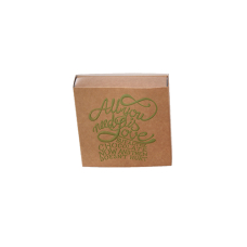 luxevensterdoos N°1 90x90/29mm Kraft met sleeve 'All you need is chocolate' olijf