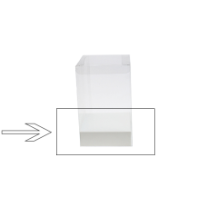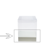 De base zit in de transparante plooidoos en is 30 mm hoog. Houd er dus rekening mee dat de vrije hoogte in de plooidoos 3 cm kleiner wordt als je de base gebruikt.