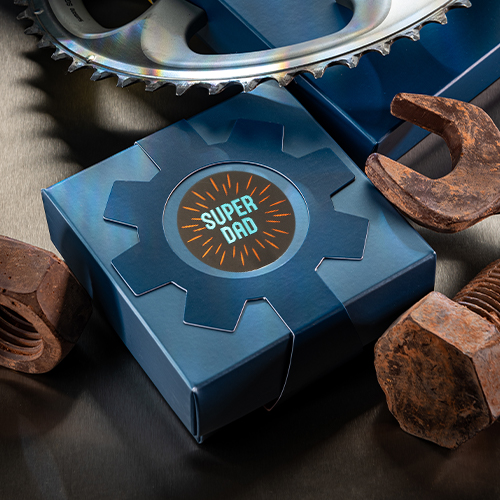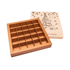 Adventskalender 188x188/30mm (25 vak van 37x37mm)- doos: Harvest gold, sleeve: Seashell + druk: Shiny gold/shiny kopper 2