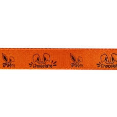 bel satin 25mm/100m 'Chocolate Bunny' col. 57 orange + shiny brown