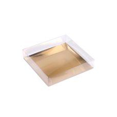 Transparante vouwdoos 70x70/140mm met bodemkarton goud