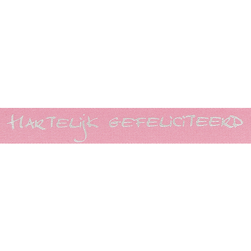ribanbel 15mm/100m "Hartelijk gefeliciteerd" dragée+zilver