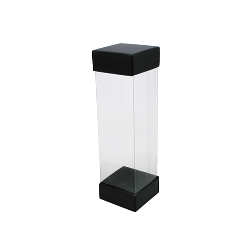 Column 1 H180 duo 'PARIS'/BLACK opaque 50x50/180mm Set bestaande uit: *1x transparante vouwdoos 50x50/h180mm (plano geleverd) *2x top/bottom voor de column in karton van 52x52/h23mm (plano geleverd) kleur: duo PARIS / BLACK opaque Dit produkt wordt verkocht per 50 stuks Personalisatie is mogelijk vanaf 800 stuks op de top/bottom