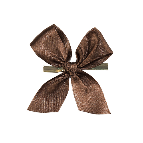 Omschrijving : Strik 2 lussen 25mm D.F. Satin clip 6cm (150st) bruin