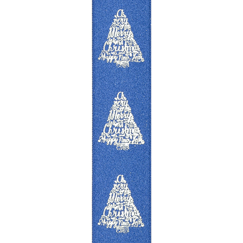 Omschrijving : prestige 25mm/100m "Kerstboom tekst" col. 319 blauw + zilver