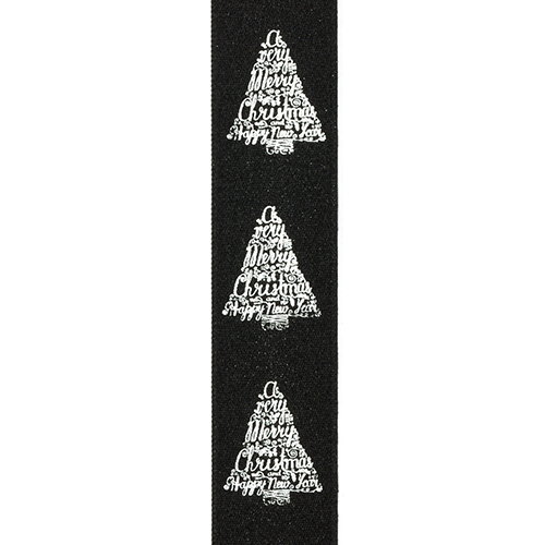 ribanbel 25mm/100m "Kerstboom tekst" zwart + zilver