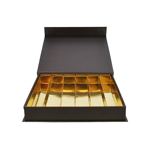 bedrukte Luxbox BRUIN 205x205/30mm met 6 rijen in blinkend goud