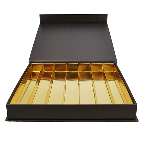 Luxbox BRUIN met bedrukking in goud 245x245/30mm (7 rijen)