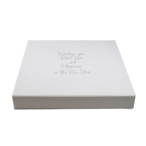Luxbox WIT met bedrukking in zilver 245x245/30mm (7 rijen)