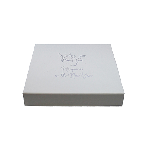 Luxbox WIT met bedrukking in zilver 205x205/30mm (6 rijen)