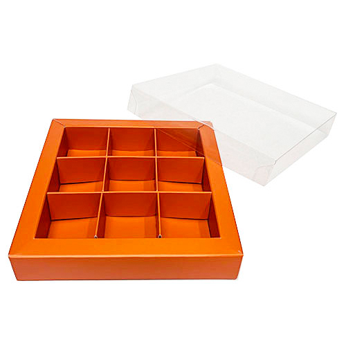 Omschrijving : Luxevensterdoos N°10 100x100/19mm (vak 32x32mm) APRICOT ORANGE opaque