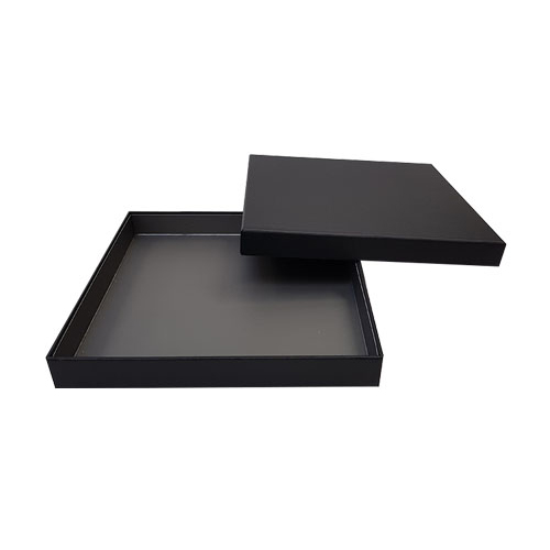 Omschrijving : Royal box ZWART 36 pralines (204x204/25mm) met inlegger Warm grey opaque