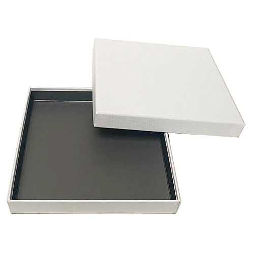 Omschrijving : Royal box WIT 25 pralines (173x173/25mm) met inlegger Warm grey opaque