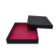 Royal box ZWART 25 pralines (173x173/25mm) met inlegger Dahlia opaque Set bestaande uit: *1x royal box ZWART (harde bodem-deksel doos) voor 25 pralines buitenafmetingen: 185x185/30mm binnenafmetingen: 175x175/25mm *1x inlegger voor de royal box in DAHLIA opaque met afmetingen 173x173/23mm