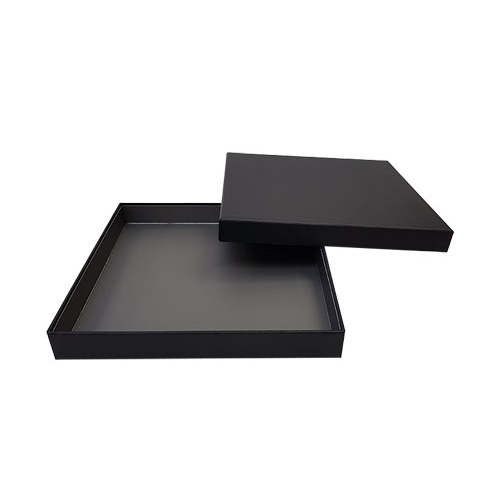 Omschrijving : Royal box ZWART 25 pralines (173x173/25mm) met inlegger Warm grey opaque