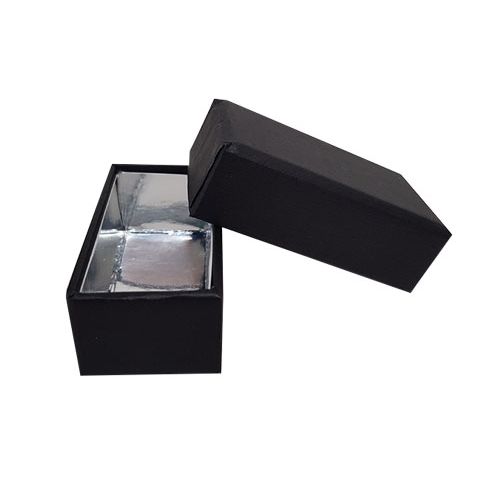 Omschrijving : Royal box ZWART 2 pralines (60x30/25mm) met inlegger Blinkend zilver