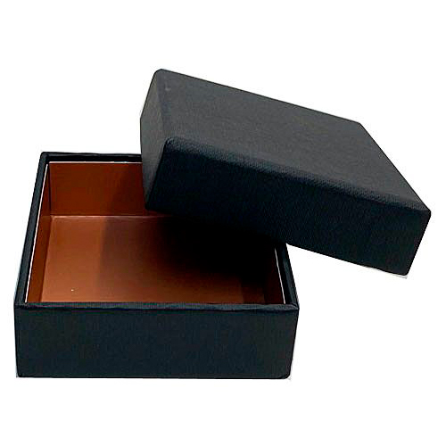 Omschrijving : Royal box ZWART 4 pralines (70x70/25mm) met inlegger Harvest gold opaque