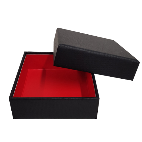 Royal box ZWART 4 pralines (70x70/25mm) met inlegger Strawberry opaque Set bestaande uit: *1x royal box ZWART (harde bodem-deksel doos) voor 4 pralines buitenafmetingen: 82x82/30mm binnenafmetingen: 72x72/25mm *1x inlegger voor de royal box in Strawberry opaque met afmetingen 70x70/23mm Dit produkt wordt verkocht per 24 stuks Apart te verkrijgen: - rijverdeling van 2 horizontale rijen (code = RIJ 2 ROYAL BOX 4) beschikbaar in 23 kleuren - vakverdeling voor 4 pralines (praline per praline) (code = VAK 4 ROYAL BOX 4) beschikbaar in 23 kleuren (Deze vakverdeling wordt verkocht per 48 stuks) - pvc afdekvel (code = PVC VEL 69x69) - cushion pad (code = CUS PAD 72) in zwart of wit Personalisatie is mogelijk vanaf 96 stuks