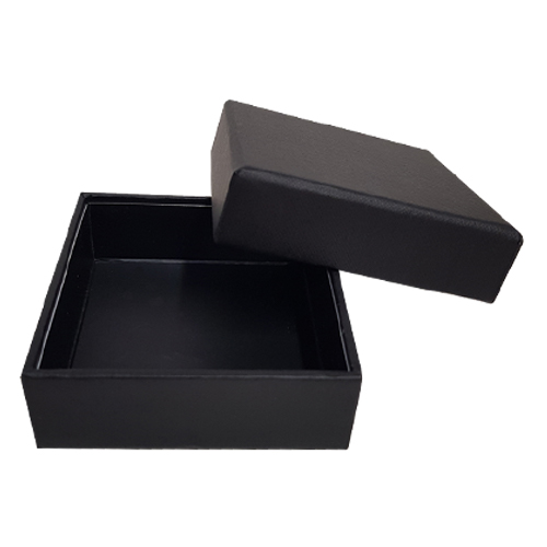 Royal box ZWART 4 pralines (70x70/25mm) met inlegger Black opaque Set bestaande uit: *1x royal box ZWART (harde bodem-deksel doos) voor 4 pralines buitenafmetingen: 82x82/30mm binnenafmetingen: 72x72/25mm *1x inlegger voor de royal box in Black opaque met afmetingen 70x70/23mm Dit produkt wordt verkocht per 24 stuks Apart te verkrijgen: - rijverdeling van 2 horizontale rijen (code = RIJ 2 ROYAL BOX 4) beschikbaar in 23 kleuren - vakverdeling voor 4 pralines (praline per praline) (code = VAK 4 ROYAL BOX 4) beschikbaar in 23 kleuren (Deze vakverdeling wordt verkocht per 48 stuks) - pvc afdekvel (code = PVC VEL 69x69) - cushion pad (code = CUS PAD 72) in zwart of wit Personalisatie is mogelijk vanaf 96 stuks