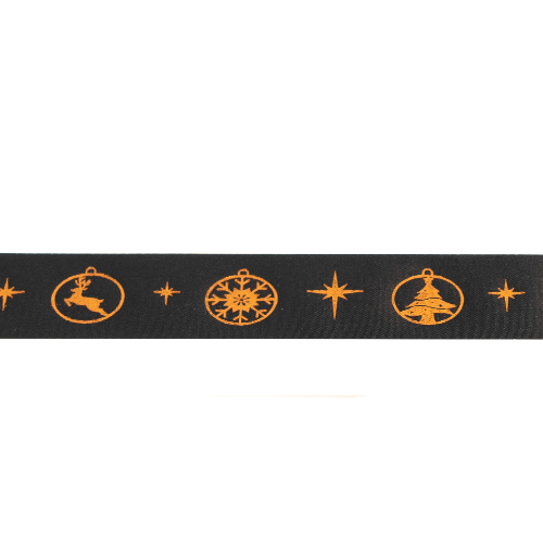 bel satin 25mm/100m 'Kerstornamenten' col. 85 black + shiny kopper 2