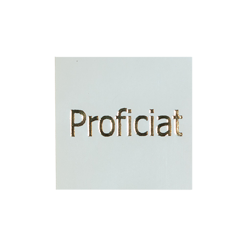 Omschrijving : etiketten 3x3cm 'Proficiat' Shiny white + Shiny Gold (500st)