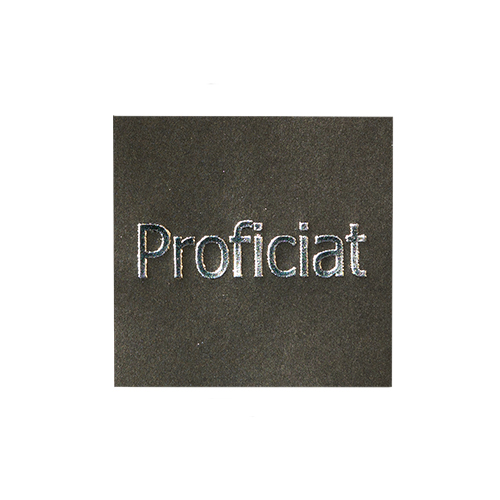 Omschrijving : etiketten 3x3cm 'Proficiat' Matte Black + Shiny Silver (500st)