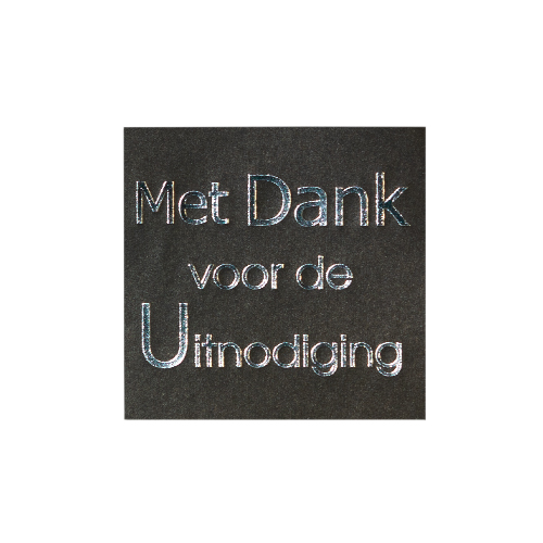 Omschrijving : etiketten 3x3cm 'Met dank voor de uitnodiging' Matte Black + Shiny Silver (500st)