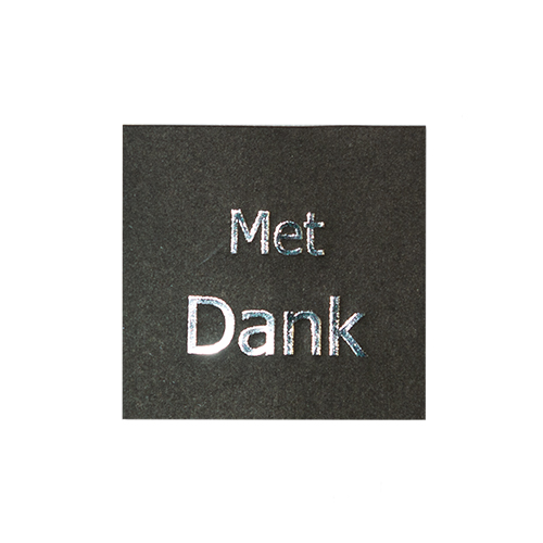 Omschrijving : etiketten 3x3cm 'Met dank' Matte Black + Shiny Silver (500st)