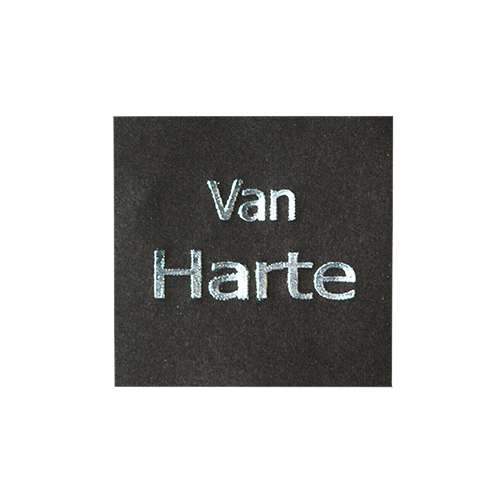 Omschrijving : etiketten 3x3cm 'Van harte' Matte Black + Shiny Silver (500st)