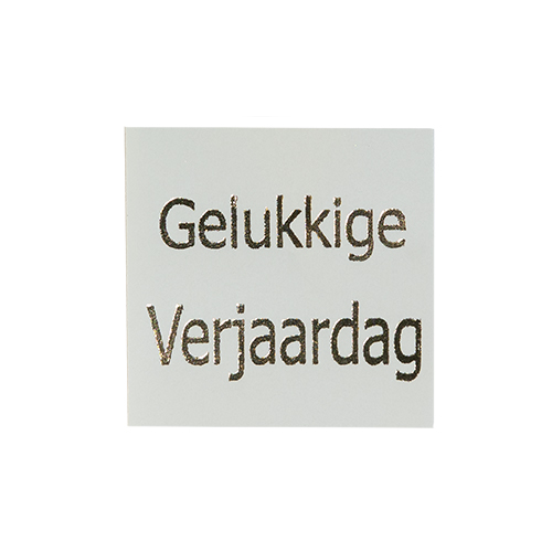 etiketten 3x3cm 'Gelukkige verjaardag' Shiny white + Shiny Gold (500st)