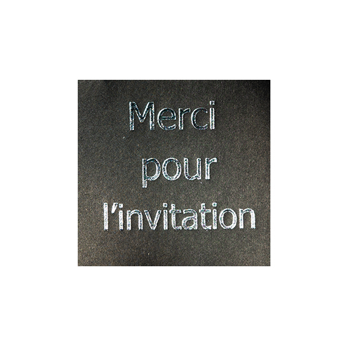 Omschrijving : etiketten 3x3cm 'Merci pour l'invitation' Matte Black + Shiny Silver (500st)