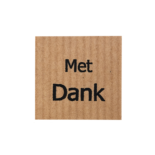 Omschrijving : etiketten 3x3cm 'Met dank' Kraft + Black (500st)