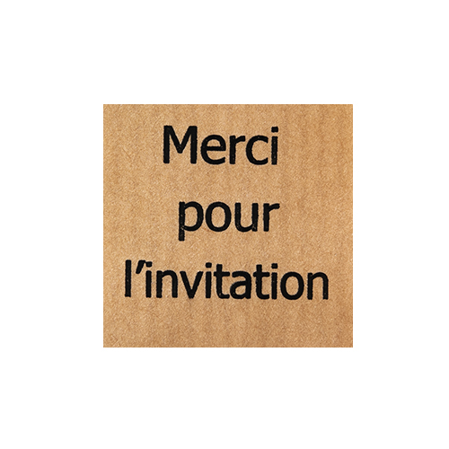 Omschrijving : etiketten 3x3cm 'Merci pour l'invitation' Kraft + Black (500st)