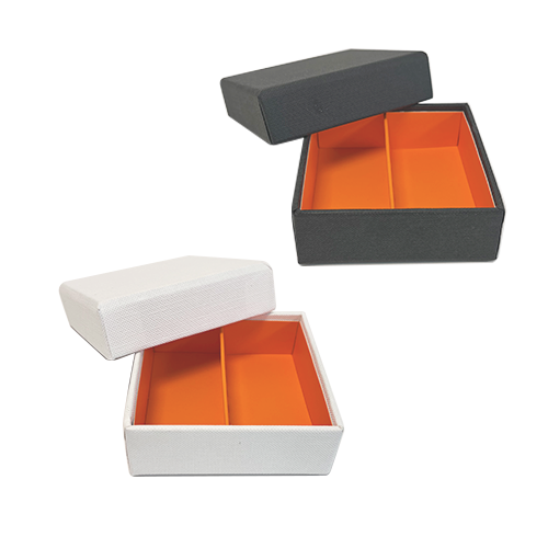 Royal box ZWART 4 pralines met inlegger Apricot orange opaque