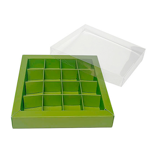 Omschrijving : Luxevensterdoos N°19 151x151/29mm (vak 37x37mm) KIWI GREEN opaque