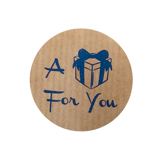 etiketten D4cm 'A gift for you' kraft + matte blue 3 (500 st)