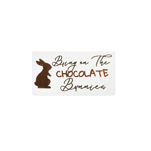 etiketten 46x25mm 'Bring on the choc...' shiny white + shiny green 1/shiny kopper 2 (500 st)