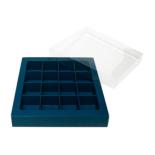 Omschrijving : Luxevensterdoos N°19 151x151/29mm (vak 37x37mm) BLUEBERRY BLUE opaque