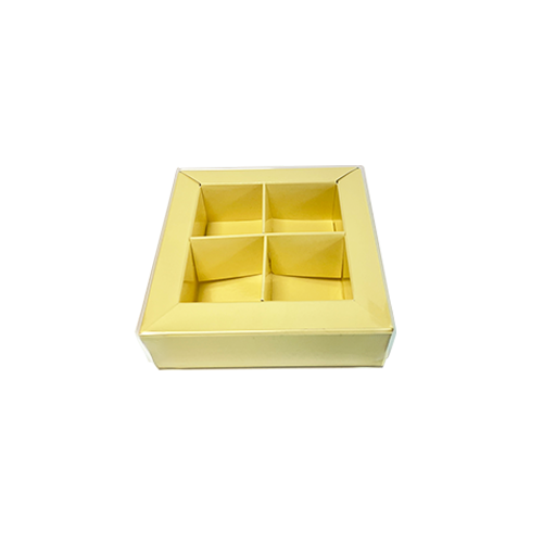 Luxevensterdoos N°17 met 4 vakjes van 37x37mm (praline per praline)Kleur: CRÈME laquéBinnenafmetingen 74x74/29mmBuitenafmetingen 102x102/30mm