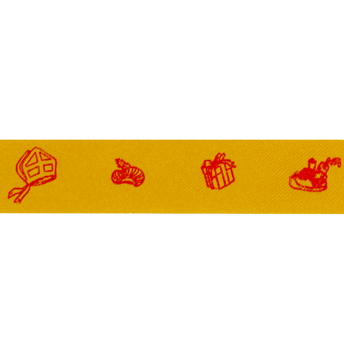 Omschrijving : bel satin 25mm/100m 'Sinterklaas' col. 51 gold + shiny red