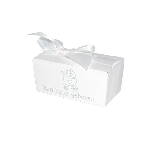 • Omschrijving : ballotin 250g metallics crystal 'een baby geboren' - 117x61/55mm