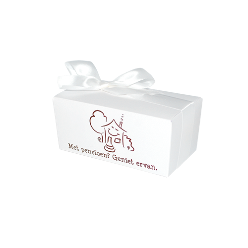 • Omschrijving : ballotin 250g metallics crystal 'met pensioen? geniet ervan' - 117x61/55mm