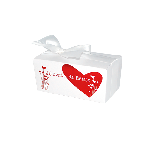 • Omschrijving : ballotin 250g metallics crystal 'jij bent de liefste' - 117x61/55mm